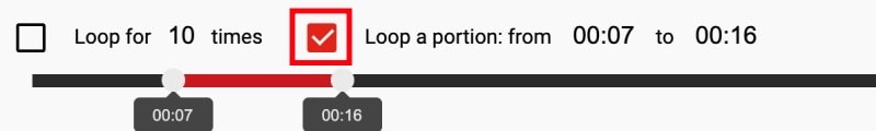 우측 상단에 'Loop a portion: from' 위에 시간이 숫자로 적혀있는데요.